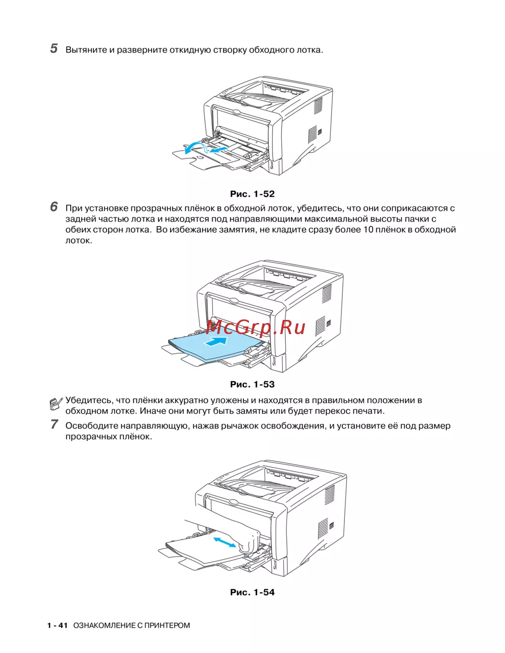Brother HL-5140 — инструкция по установке пленок в обходной лоток принтера [48/138]