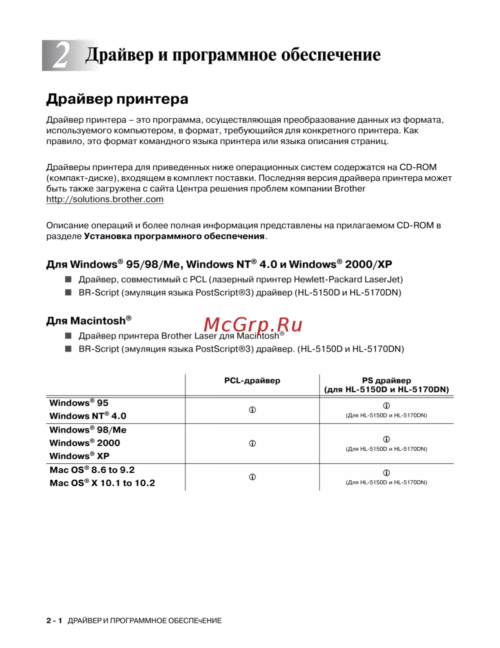 ■ BRScript (эмуляция языка PostScript®3) драйвер. (HL5150D и HL5170DN)