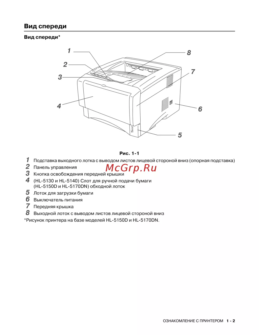 *Рисунок принтера на базе моделей HL5150D и HL5170DN.