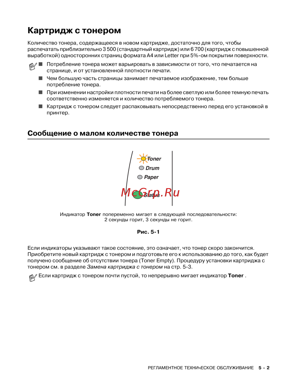 - Отсутствует тонер p.109