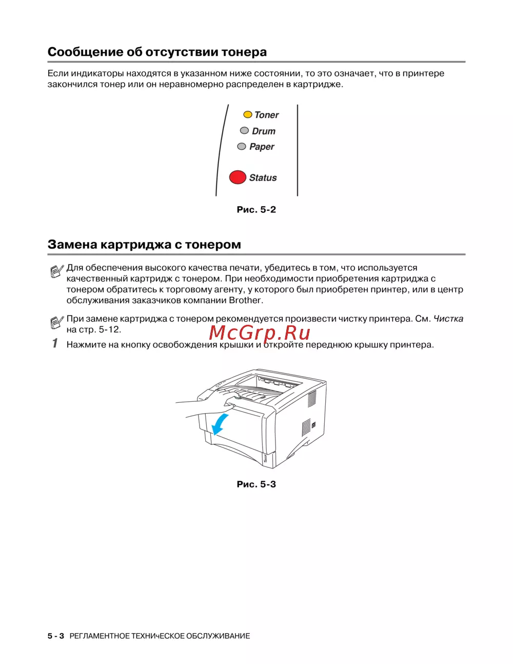 Brother HL-5140 — регламентное техническое обслуживание принтера: замена тонера [96/138]