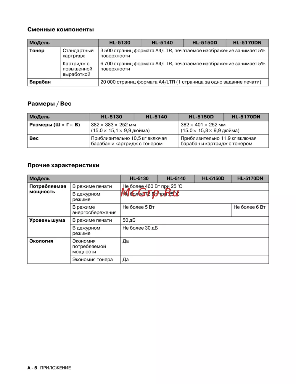 MoДeль HL-5130 HL-5140 HL-5150D HL-5170DN
