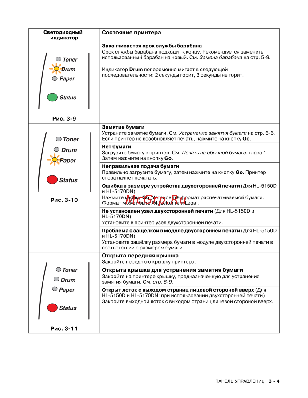 использованный барабан на новый. Cм. Замена барабана на стр. 59.