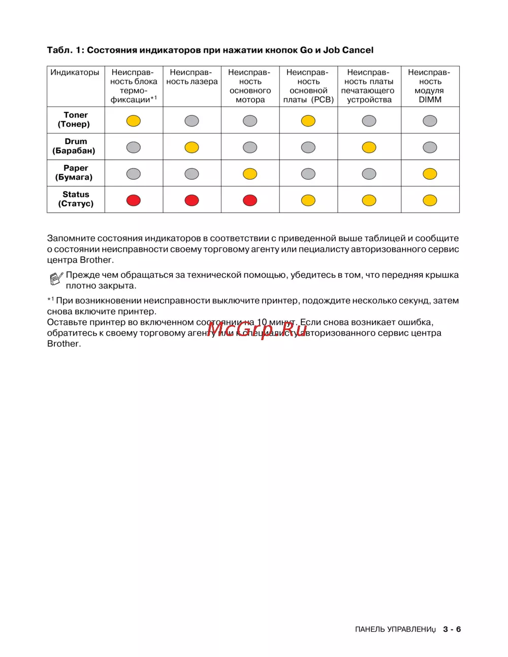 ![Brother HL-5130 [83/138] Табл 1 состояния индикаторов при нажатии кнопок go и job cancel](/views2/1025120/page83/bg53.png)