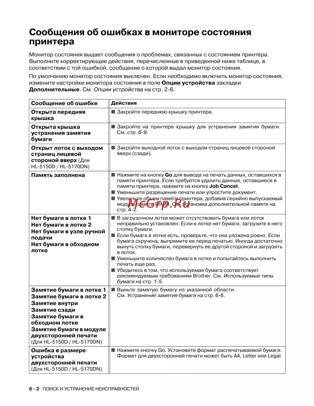 - Монитор состояния выдает сообщения о проблемах связанных с состоянием принтера выполните корректирующие действия перечисленные в приведенной ниже таблице в соответствии с той ошибкой сообщение о которой выдал монитор состояния по умолчанию монитор состояния выключен если необходимо включить монитор состояния измените настройки монитора состояния в поле опции устройства закладки дополнительные см опции устройства на стр 2 6 p.108