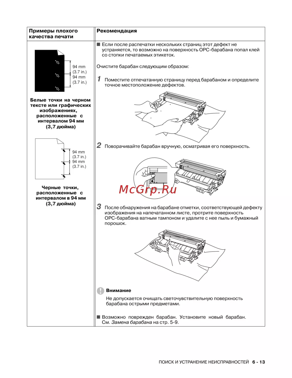 устраняется, то возможно на поверхность OPCбарабана попал клей