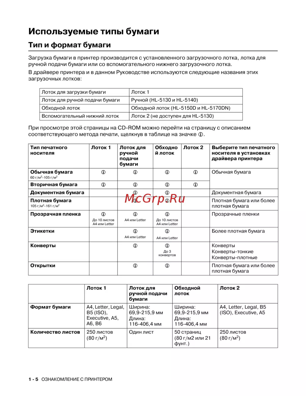 ![Brother HL-5150D [12/138] Используемые типы бумаги](/views2/1025120/page12/bgc.png)