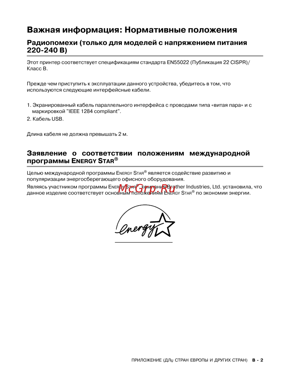 Узнайте о нормативных положениях радиопомех и энергосберегающих характеристиках принтеров. Важные рекомендации по использованию интерфейсных кабелей.
