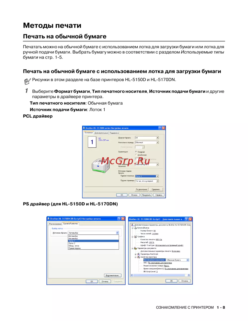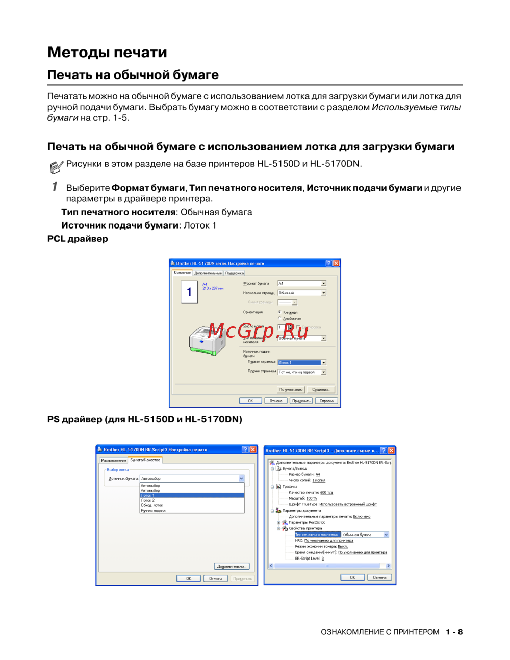 Brother HL-5170DN — методы печати на обычной бумаге: руководство по использованию [15/138]