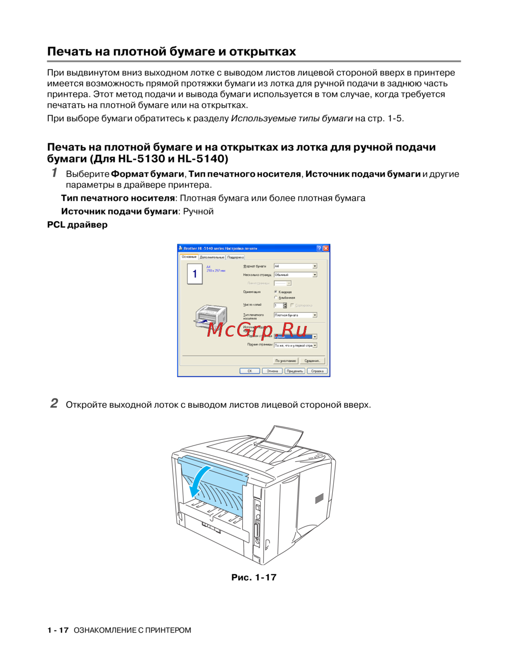 - Печать на плотной бумаге и на открытках из лотка для ручной подачи бумаги для hl 5130 и hl 5140 p.24