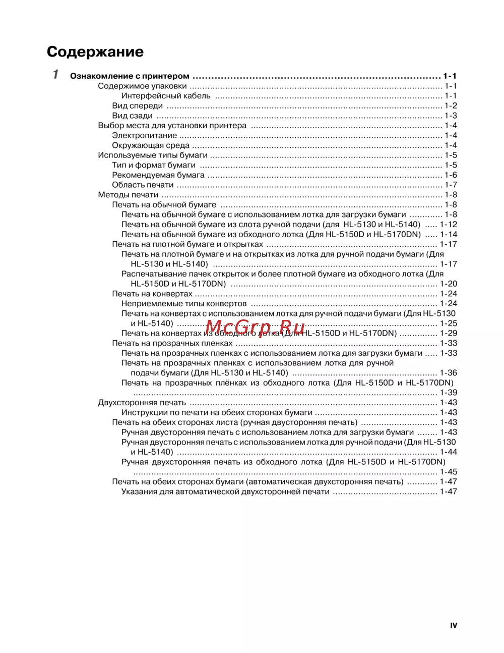 - Печать на плотной бумаге и на открытках из лотка для ручной подачи бумаги для hl5130 и hl5140 p.24