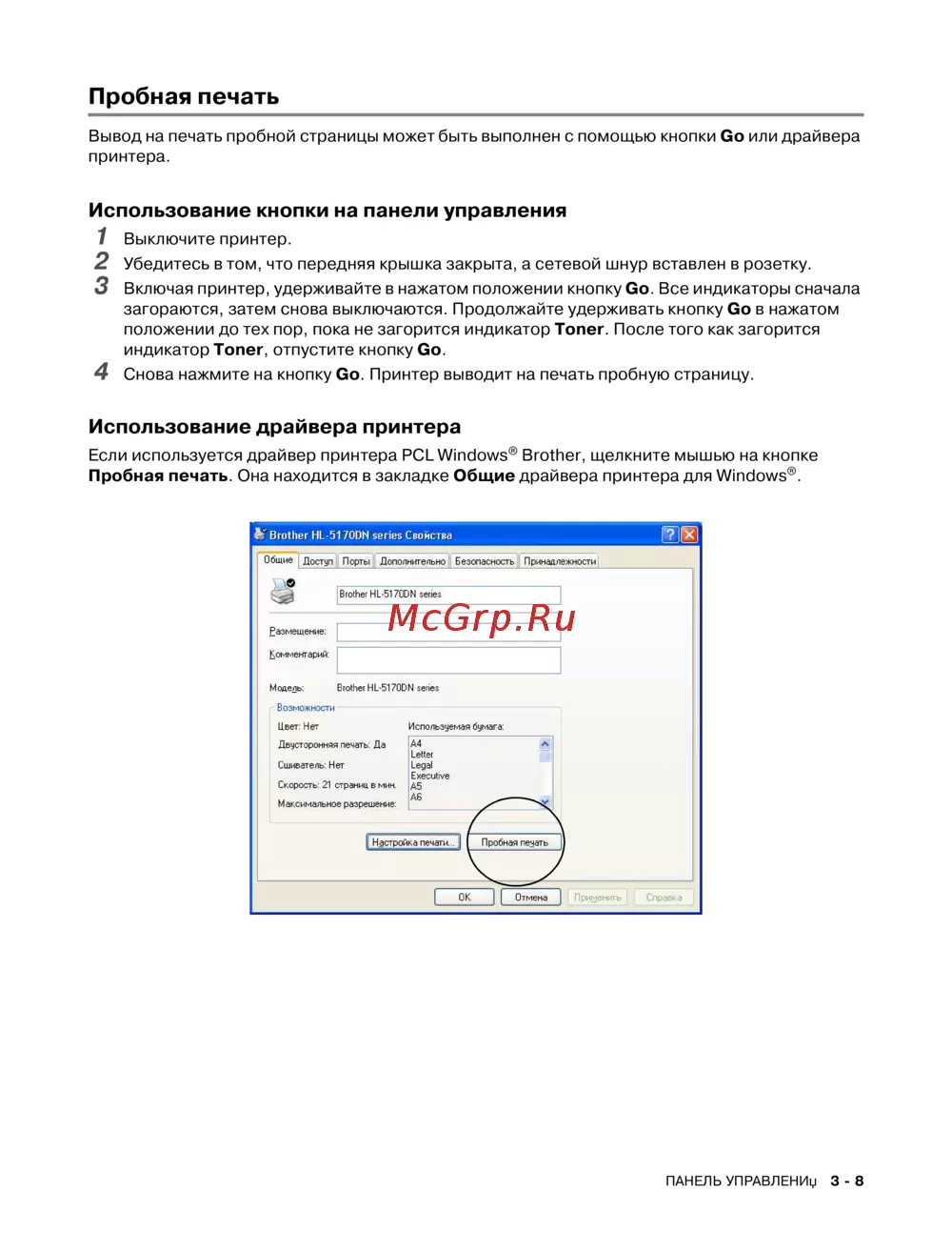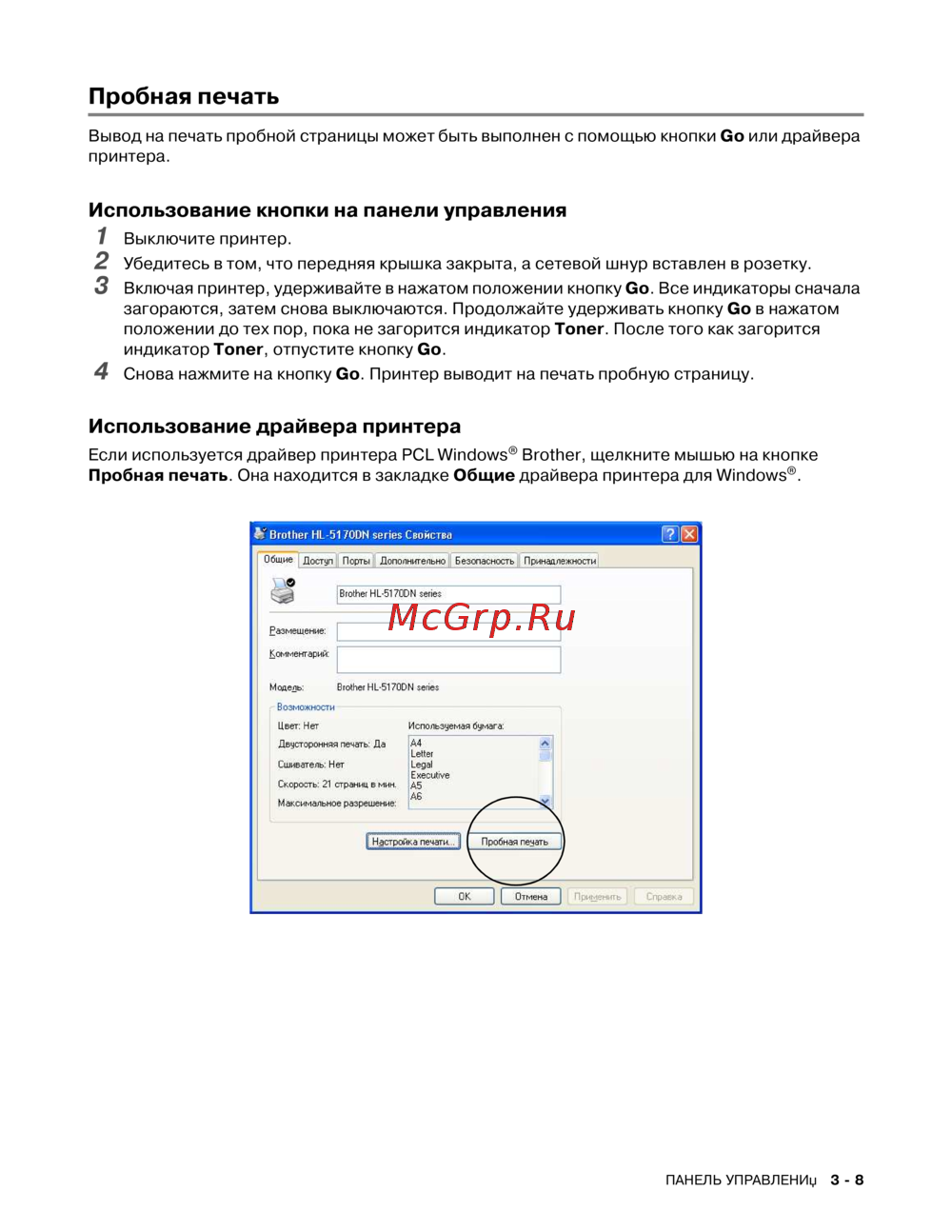 Brother HL-5170DN — как выполнить пробную печать на принтере: пошаговая инструкция [85/138]