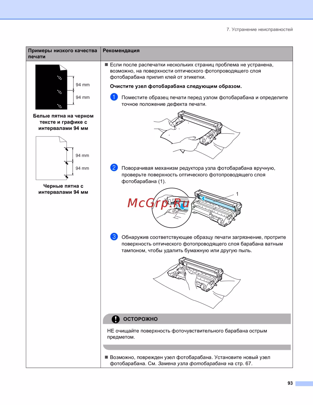 Узнайте, как устранить проблемы с печатью, такие как белые и черные пятна. Следуйте нашим рекомендациям для очистки фотобарабана и улучшения качества печати.