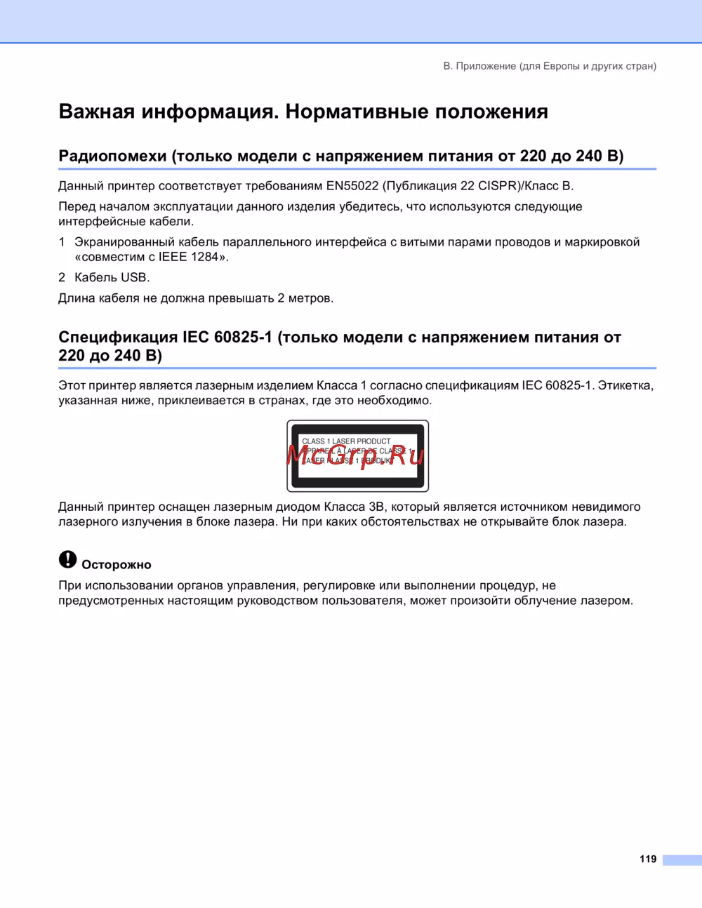 ![Brother HL-5240 [127/133] Спецификация iec 60825 1 только модели с напряжением питания от 220 до 240 в](/views2/1025149/page127/bg7f.png)