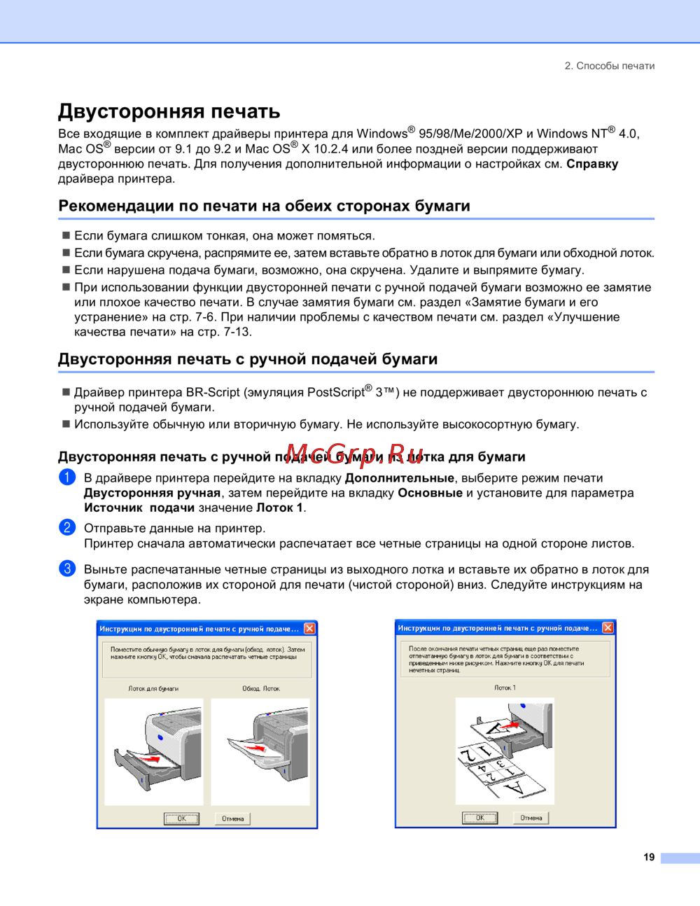 - Двусторонняя печать с ручной подачей бумаги из лотка для бумаги p.27