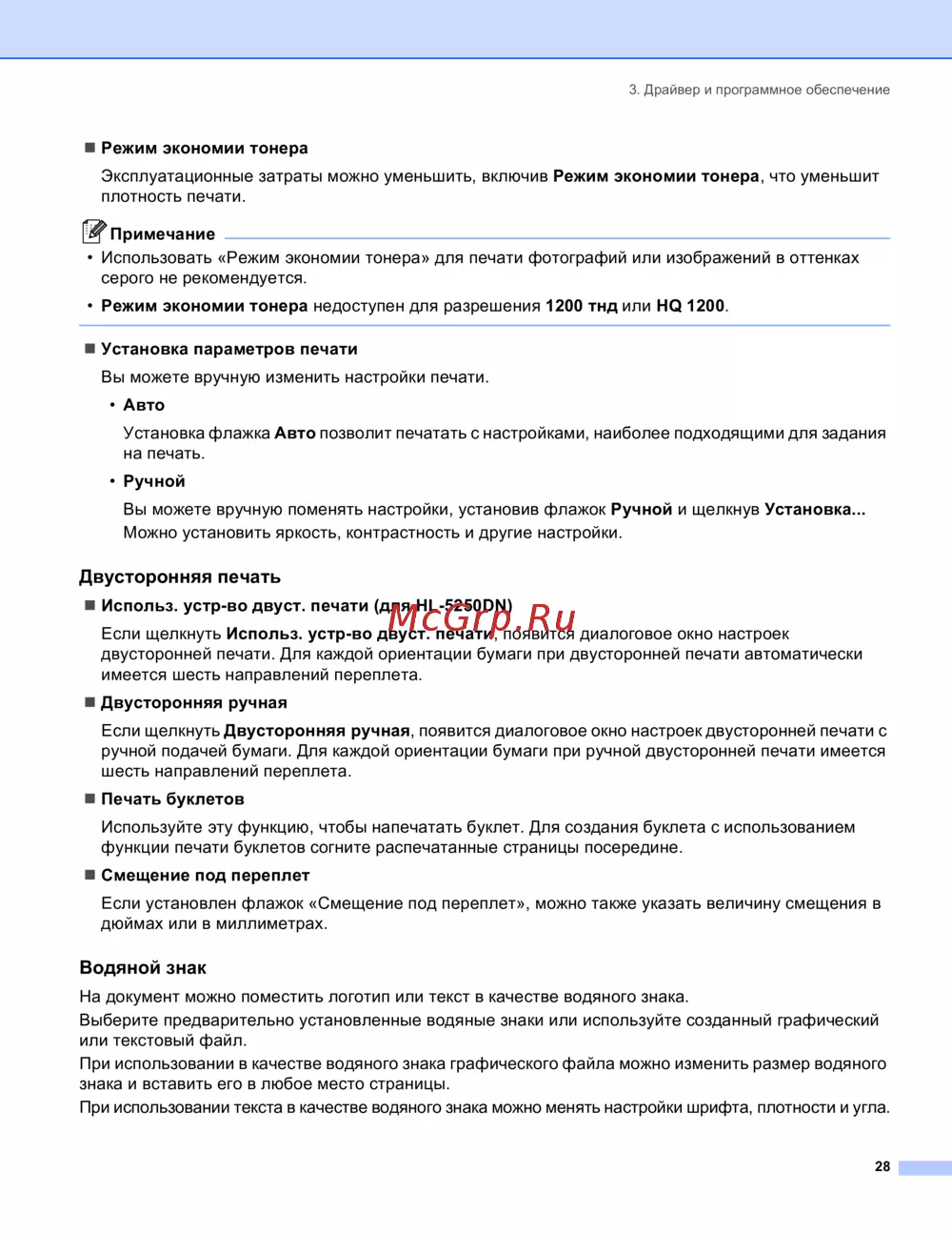 - Автоматическая двусторонняя печать для hl 5250dn p.30