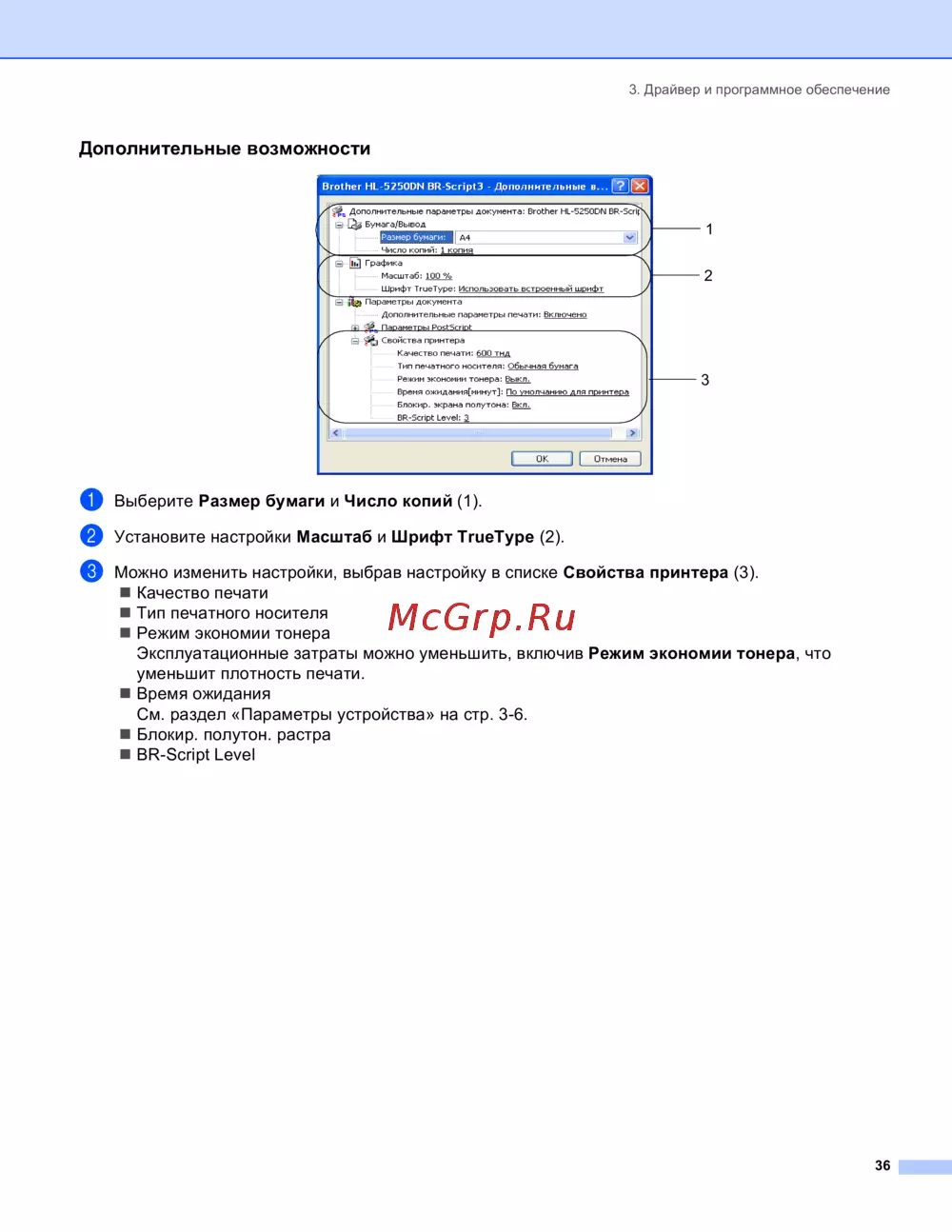 Brother HL-5240 — настройки драйвера и программного обеспечения для печати [44/133]
