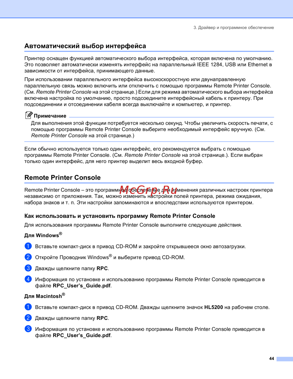 Brother HL-5240 — автоматический выбор интерфейса и управление принтером [52/133]