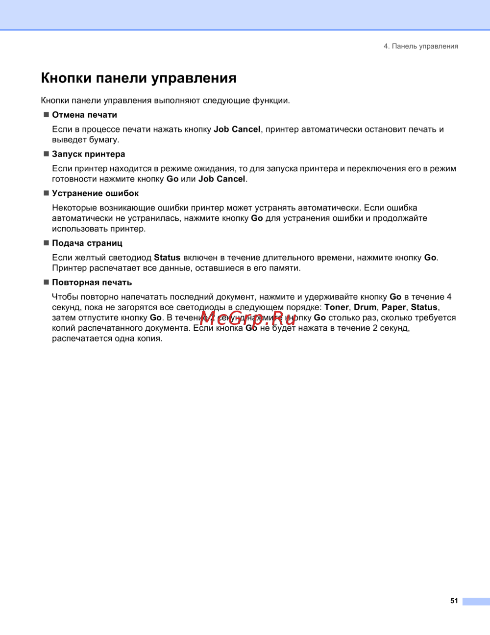Brother HL-5240 — функции кнопок панели управления принтера и их использование [59/133]