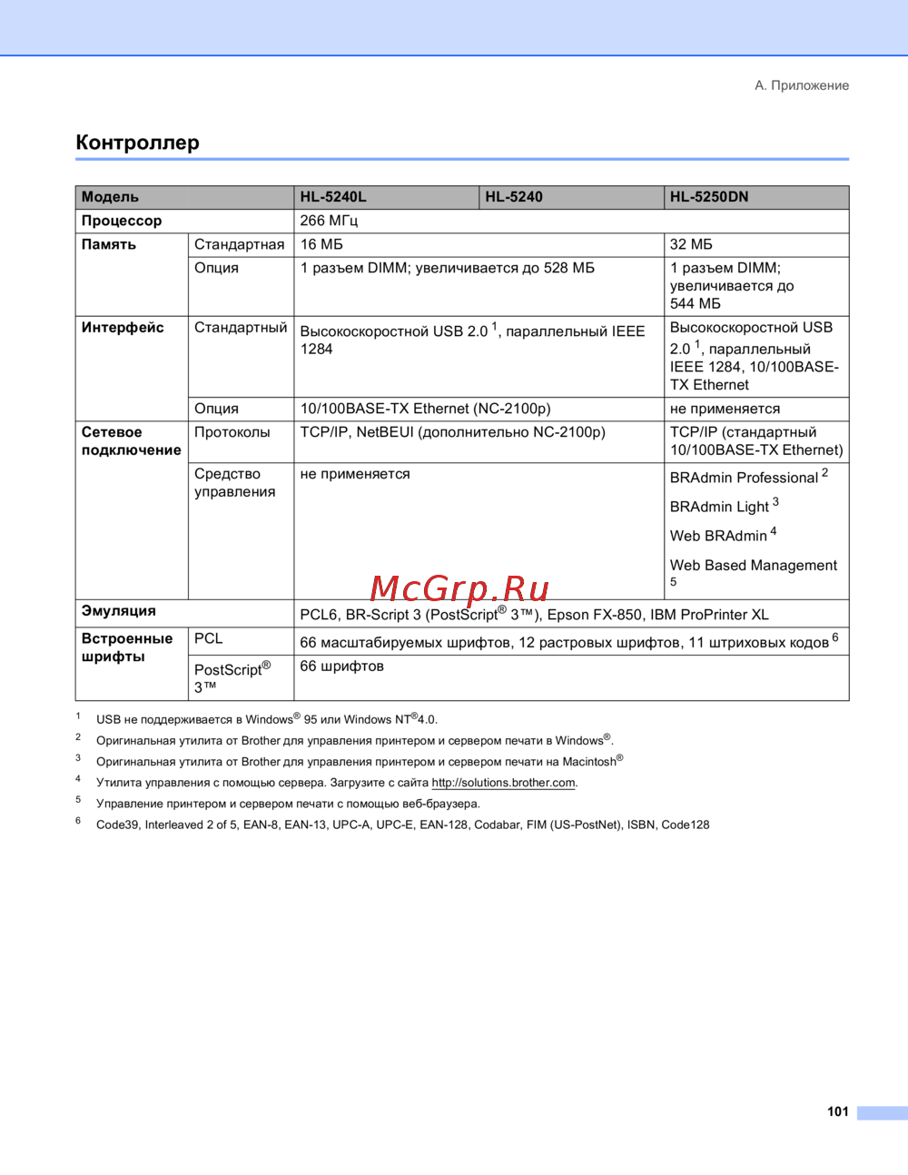 Brother HL-5250DN — управление принтером и сервером печати: полезные утилиты и функции [109/133]