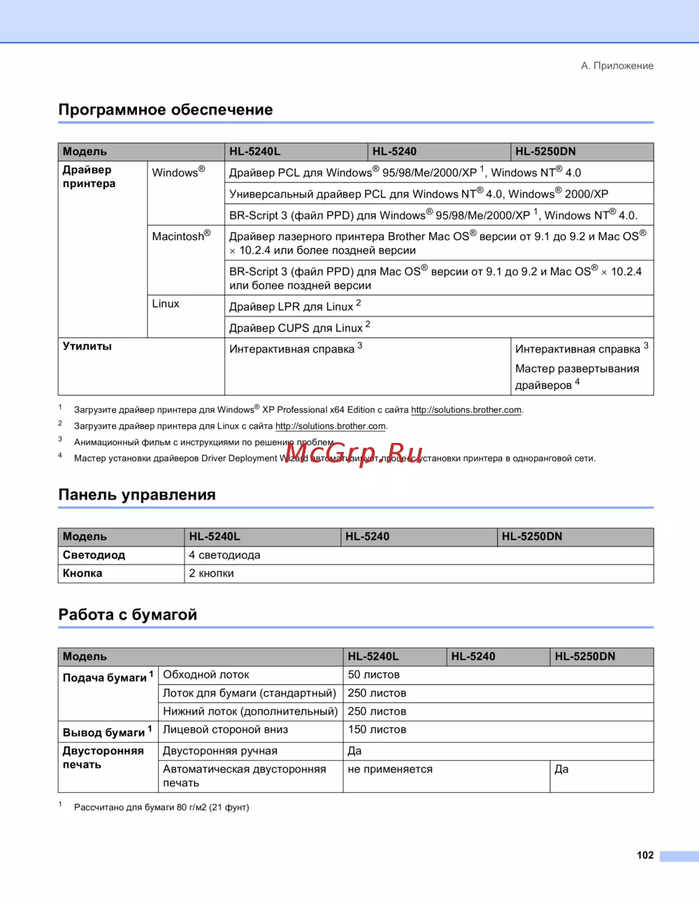 ![Brother HL-5250DN [110/133] Работа с бумагой](/views2/1025149/page110/bg6e.png)