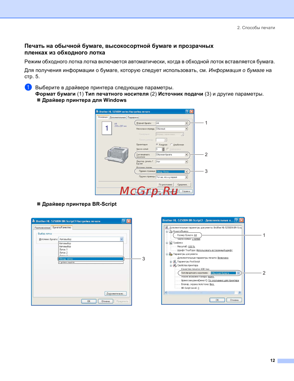 Brother HL-5250DN — как выбрать тип бумаги и настройки для печати на принтере [20/133]