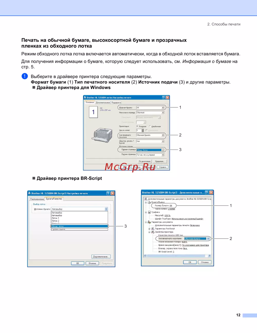 Узнайте, как выбрать правильный тип бумаги и настройки драйвера для печати на принтере. Обходной лоток, параметры бумаги и источники подачи — всё, что вам нужно для качественной печати.