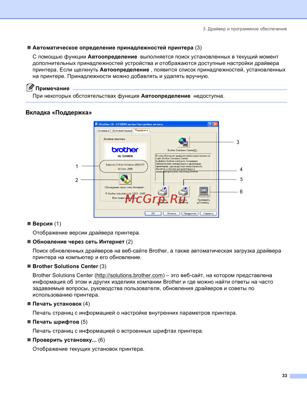 Brother HL-5250DN — обновление драйвера принтера и управление принадлежностями [41/133]