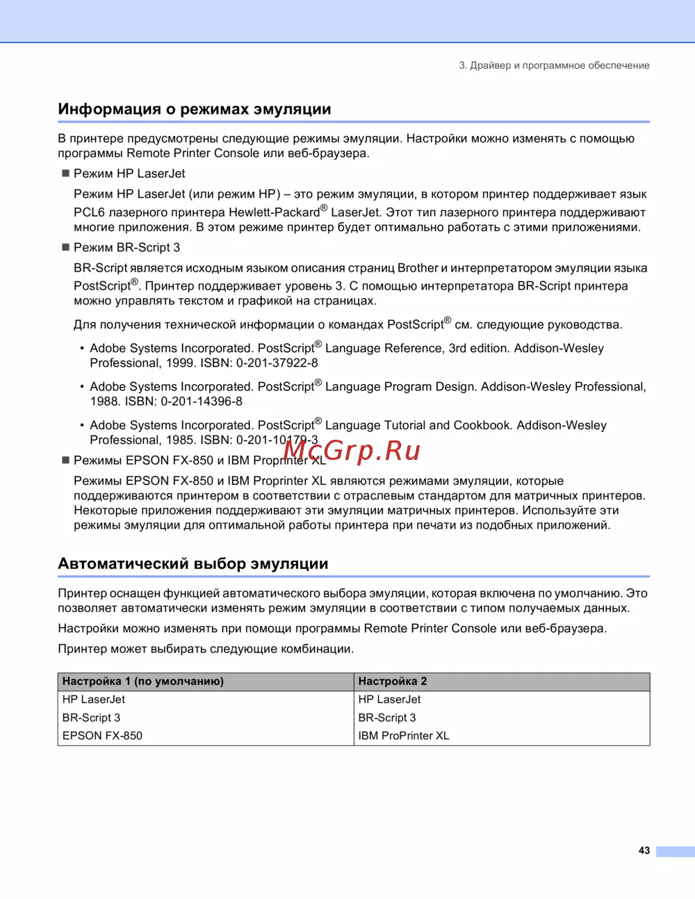 . Принтер поддерживает уровень 3. С помощью интерпретатора BR-Script принтера