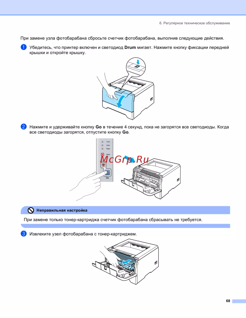 При замене только тонер-картриджа счетчик фотобарабана сбрасывать не требуется.