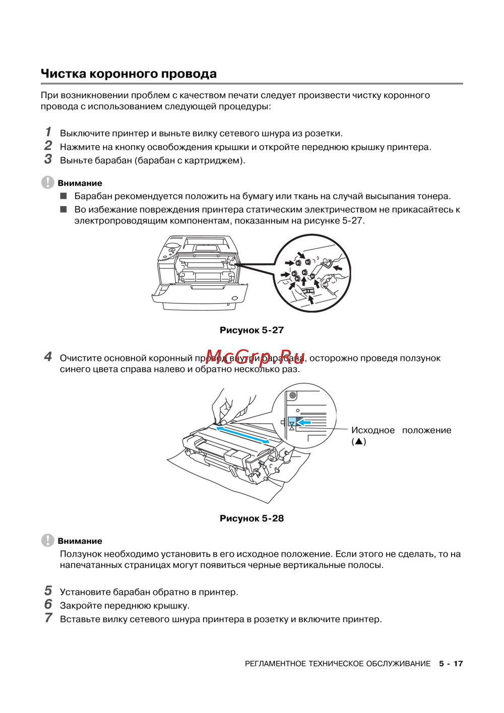 Brother HL-6050 — регламентное техническое обслуживание принтера: чистка коронного провода [144/193]