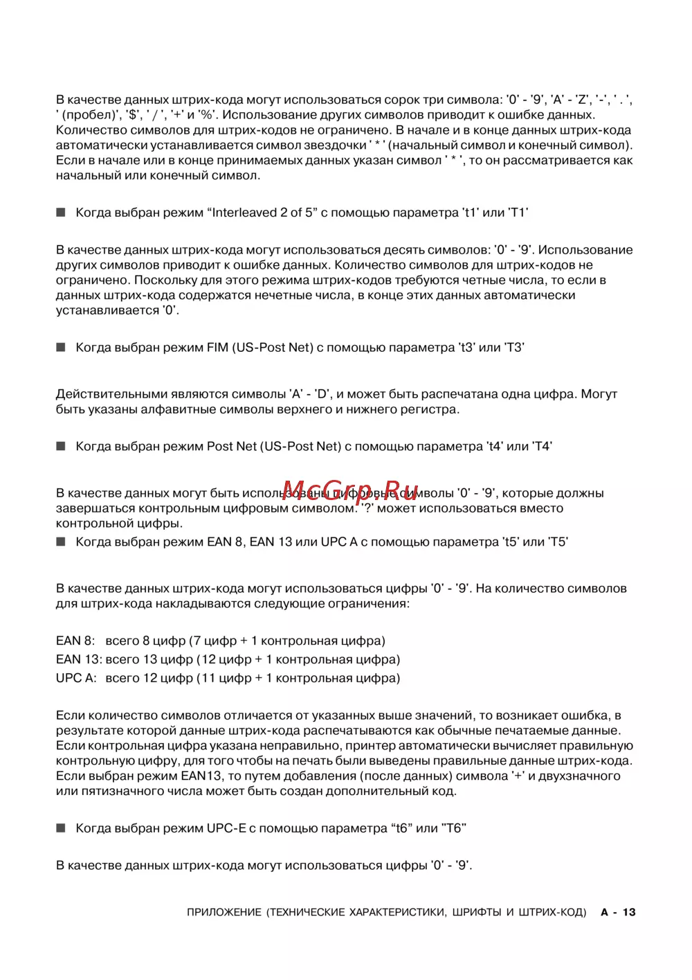 ПРИЛОЖЕНИЕ (ТЕХНИЧЕСКИЕ ХАРАКТЕРИСТИКИ, ШРИФТЫ И ШТРИХКОД) A 13