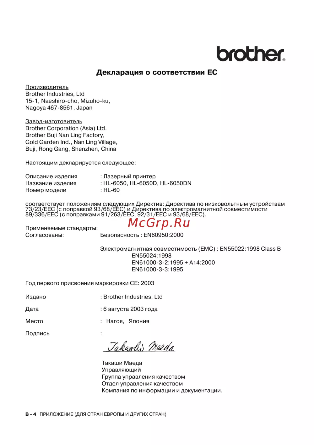 ![Brother HL-6050 [191/193] Декларация о соответствии ес](/views2/1025169/page191/bgbf.png)