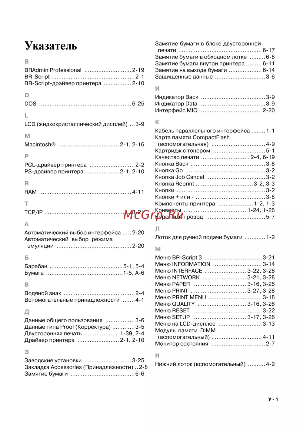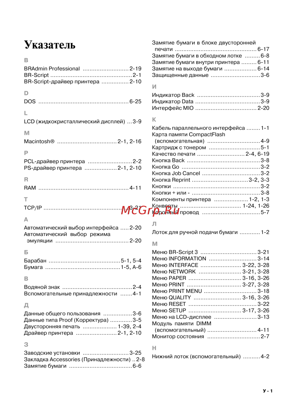 Brother HL-6050 [192/193] Указатель