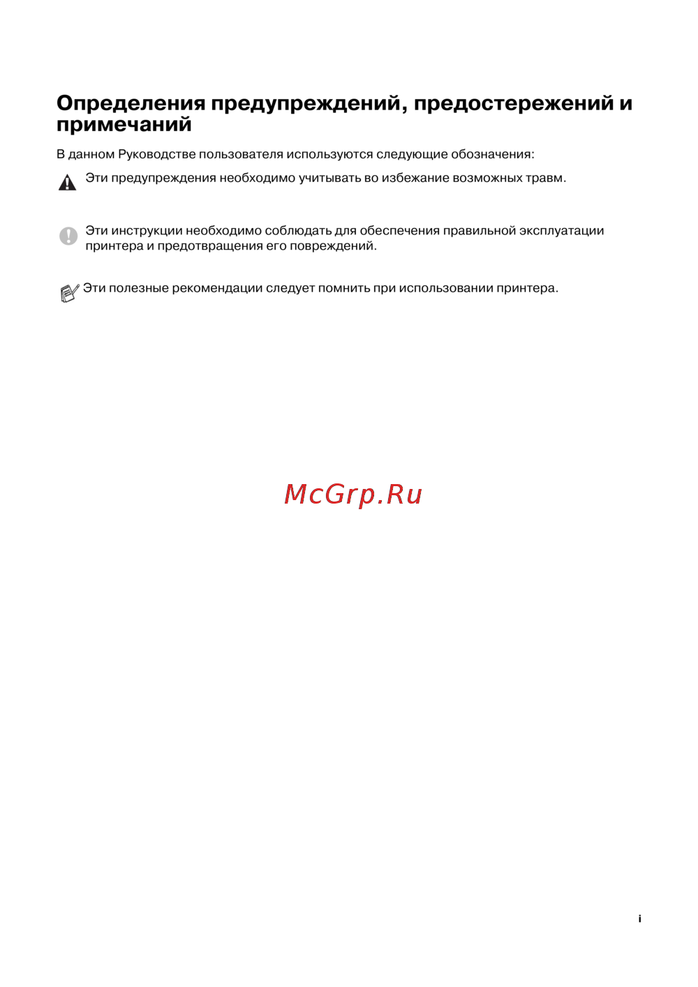 Brother HL-6050 [2/193] Определения предупреждений предостережений и примечаний