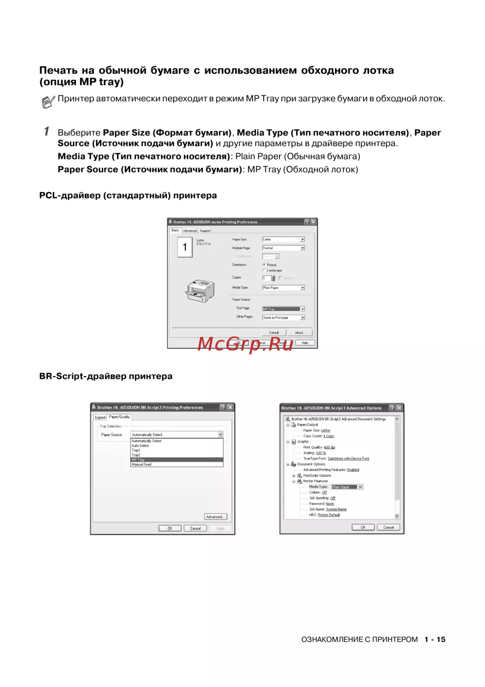 - Ручная двустороння печать с использованием лотка для загрузки бумаги для pcl драйвера принтера p.48
