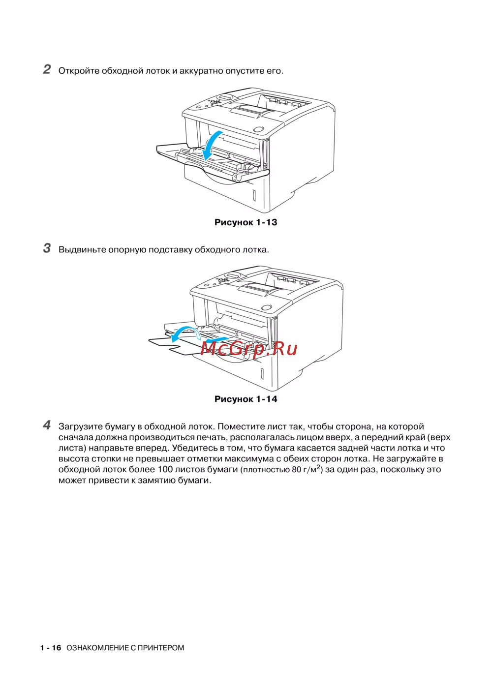 - Загрузка бумаги в принтер производится с установленного загрузочного лотка лотка для ручной подачи бумаги обходного лотка или со вспомогательного нижнего загрузочного лотка в драйвере принтера и в данном руководстве используются следующие названия этих загрузочных лотков p.14