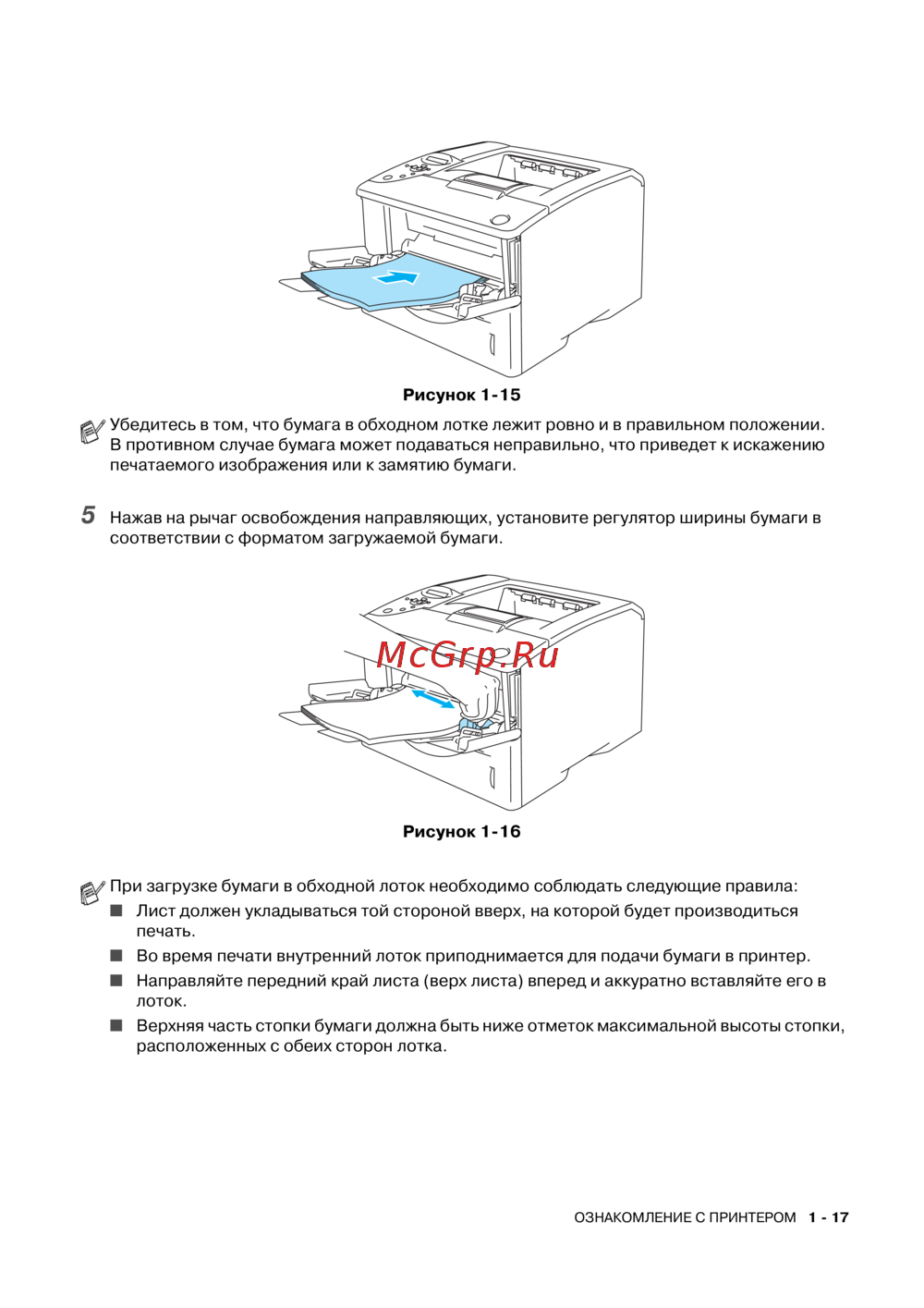 - Загрузка бумаги в принтер производится с установленного загрузочного лотка лотка для ручной подачи бумаги обходного лотка или со вспомогательного нижнего загрузочного лотка в драйвере принтера и в данном руководстве используются следующие названия этих загрузочных лотков p.14