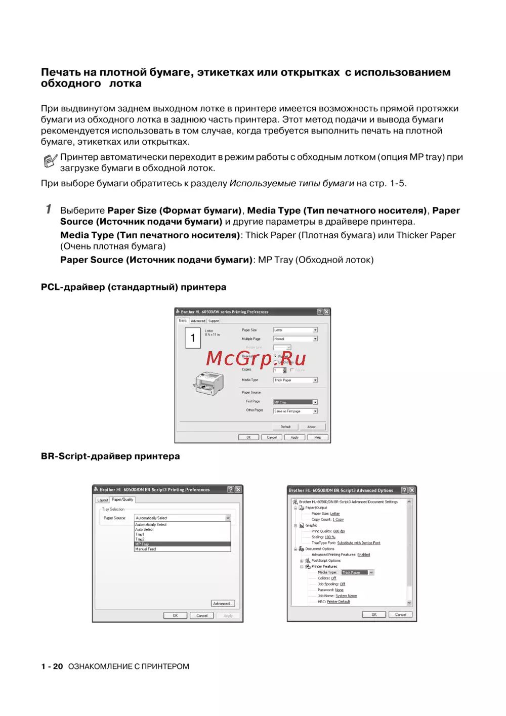 Paper Source (Источник подачи бумаги): MP Tray (Обходной лоток)