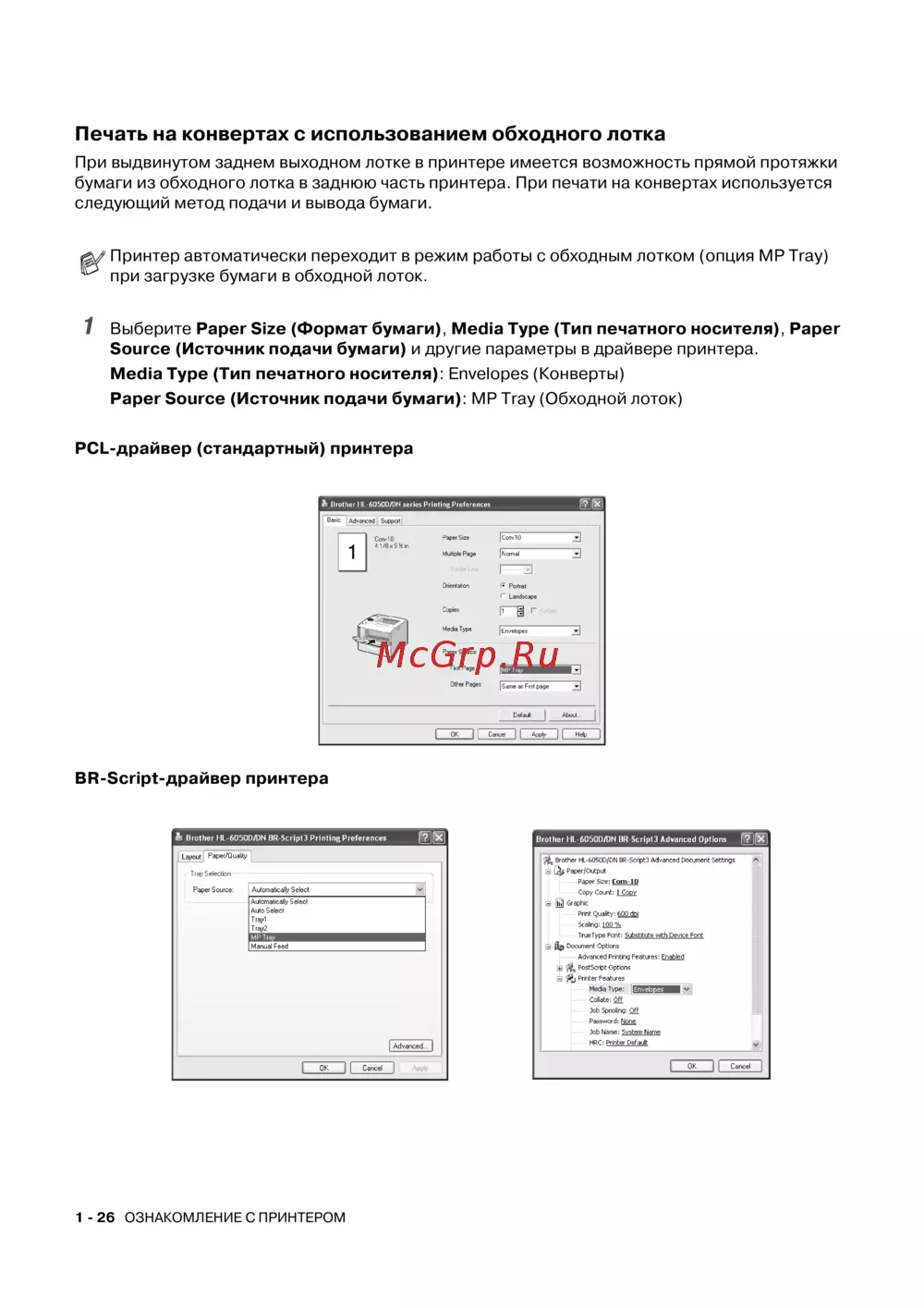 - Ручная двустороння печать с использованием лотка для загрузки бумаги для pcl драйвера принтера p.48