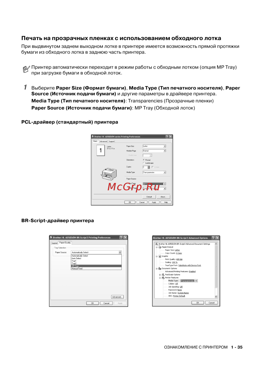 Brother HL-6050 — как печатать на прозрачных пленках с использованием обходного лотка [44/193]