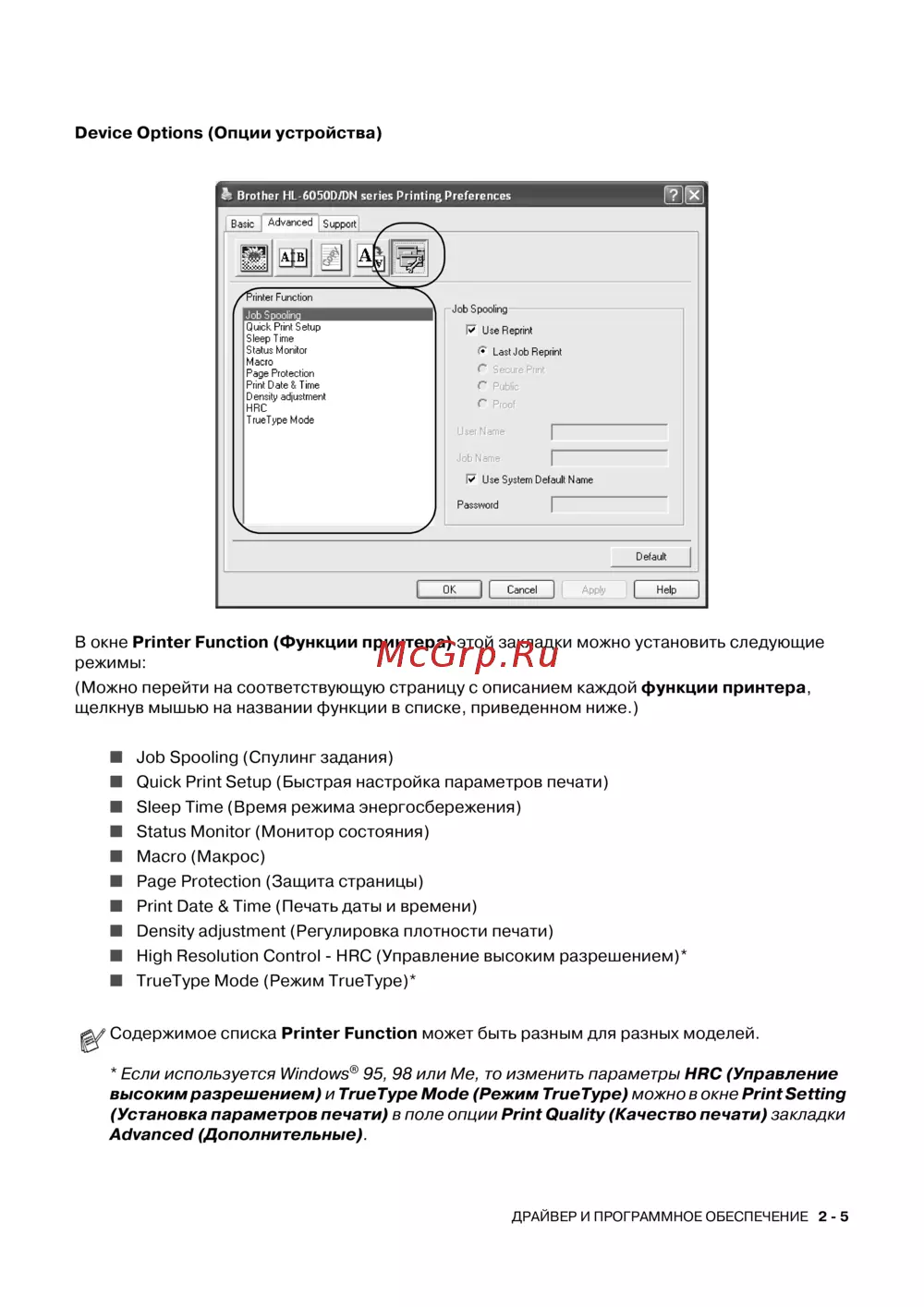 Brother HL-6050 — настройки драйвера и программного обеспечения для принтера [64/193]