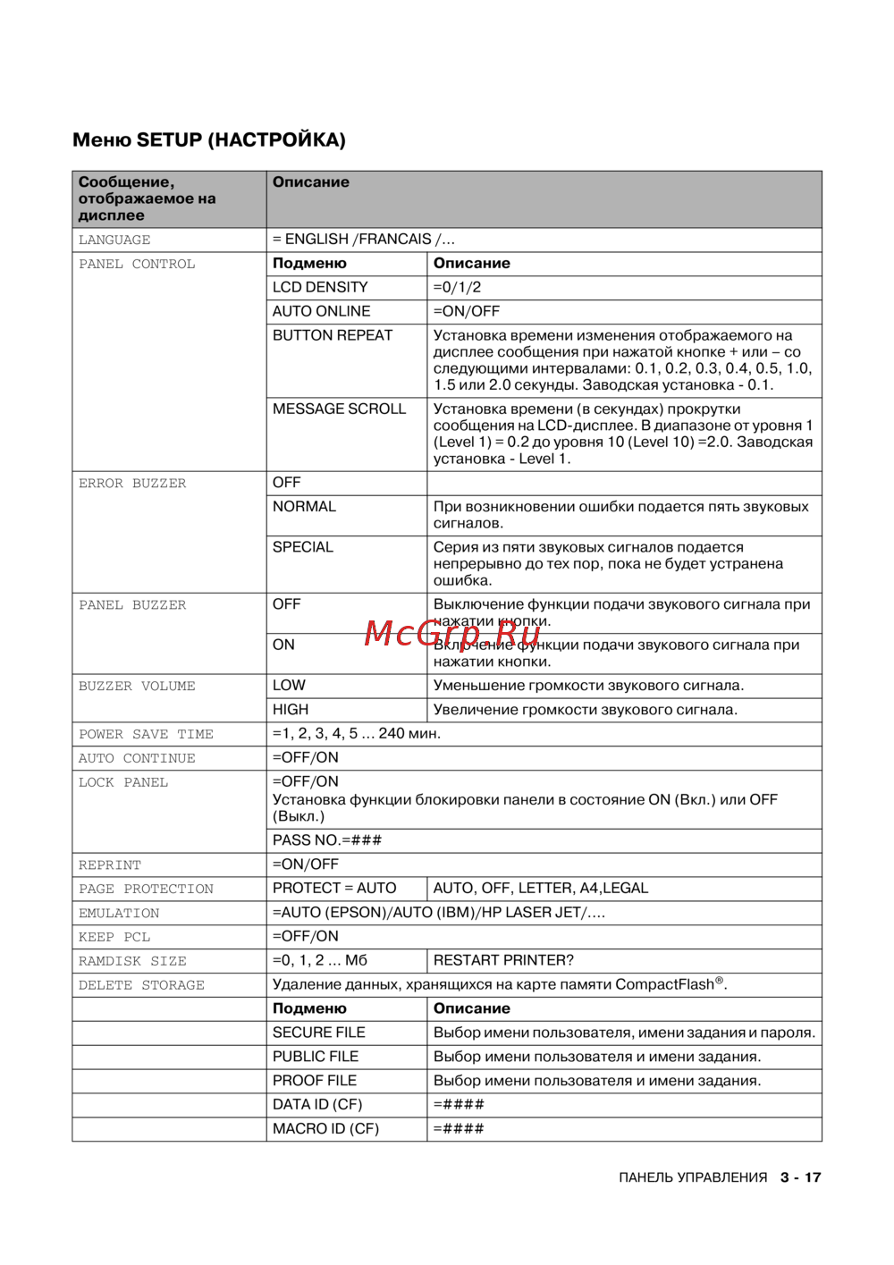 ПАНЕЛЬ УПРАВЛЕНИЯ 3 17