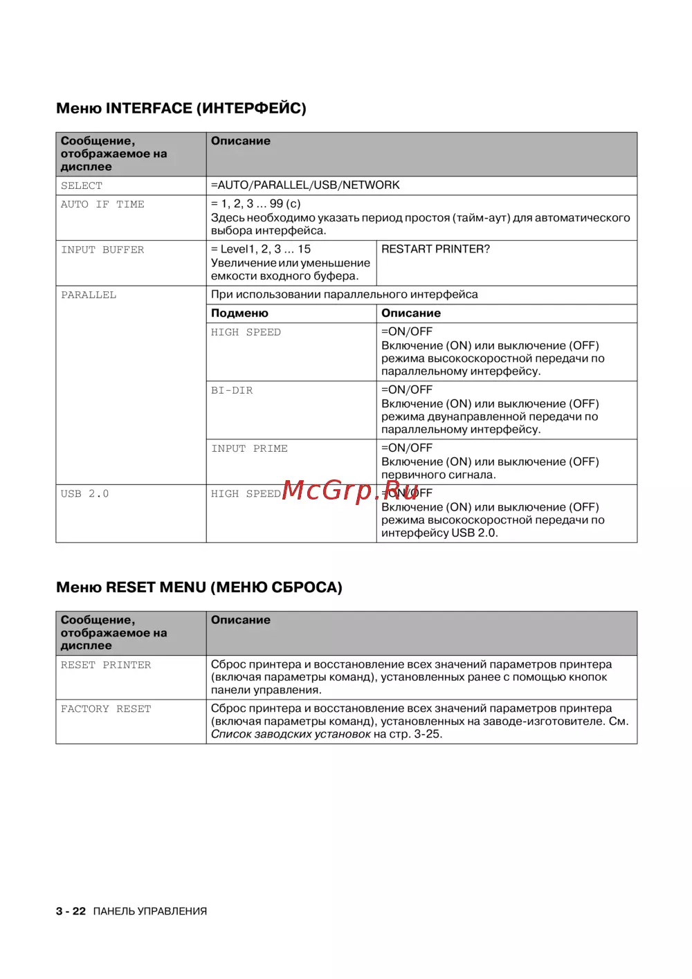 Изучите настройки интерфейса и параметры сброса принтера. Узнайте, как управлять режимами передачи и восстанавливать заводские настройки.