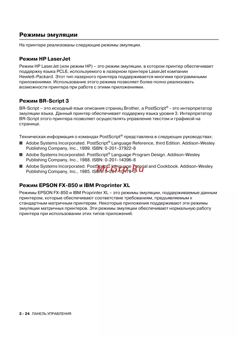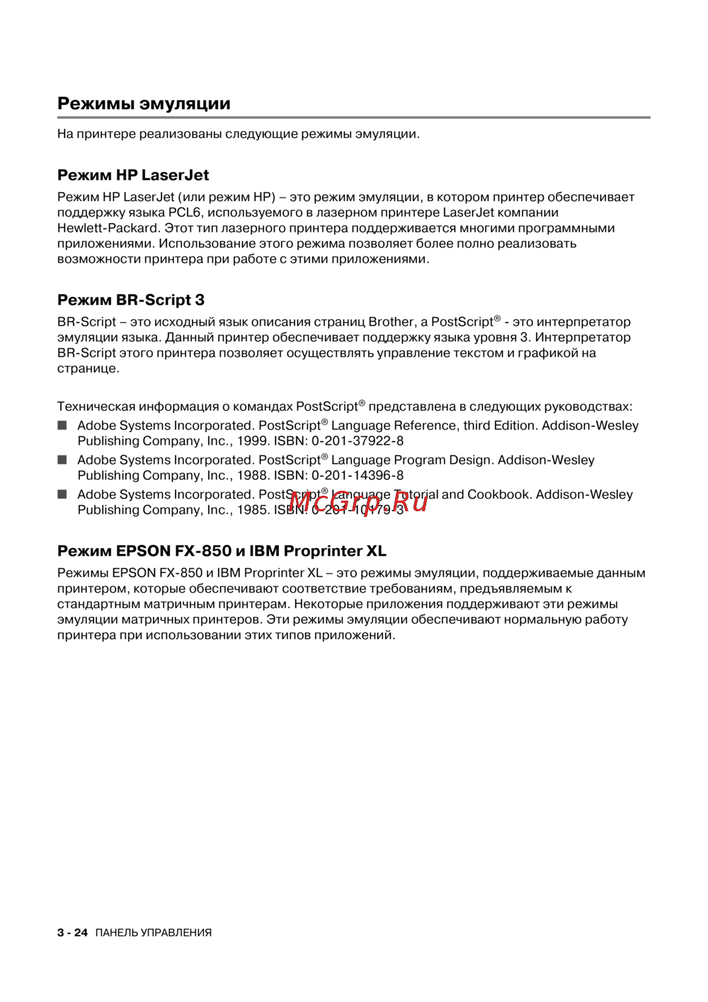 Brother HL-5130 — эмуляция режимов принтера: HP, BR-Script, EPSON и IBM [105/193]