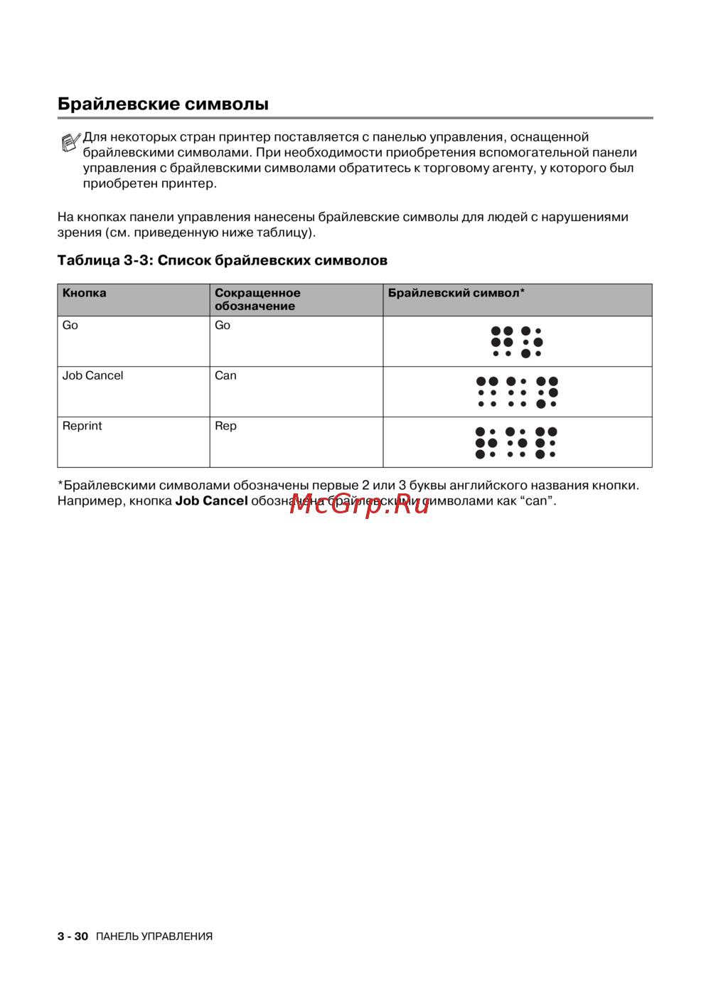 ![Brother HL-5130 [111/193] Таблица 3 3 список брайлевских символов](/views2/1025169/page111/bg6f.png)