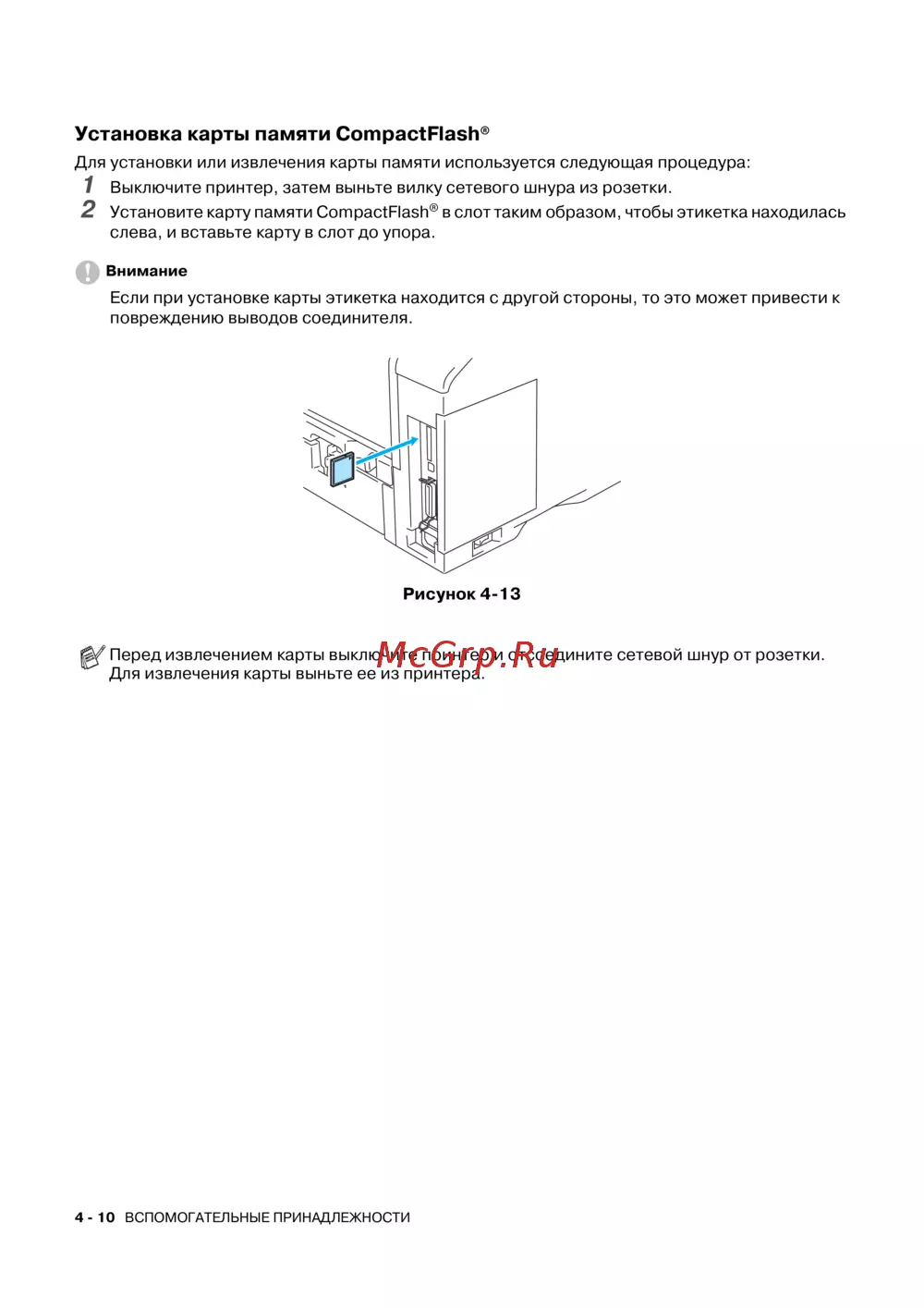 Brother HL-5130 — установка и извлечение карты памяти CompactFlash: пошаговая инструкция [121/193]