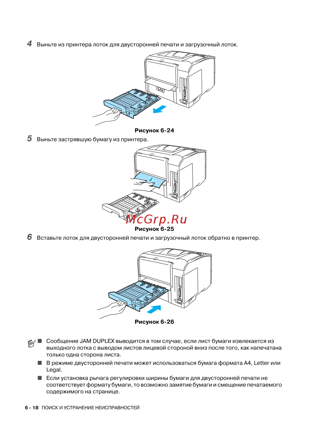 Узнайте, как правильно устранить неисправности принтера, включая застревание бумаги и настройку лотков для двусторонней печати. Полезные советы для пользователей.
