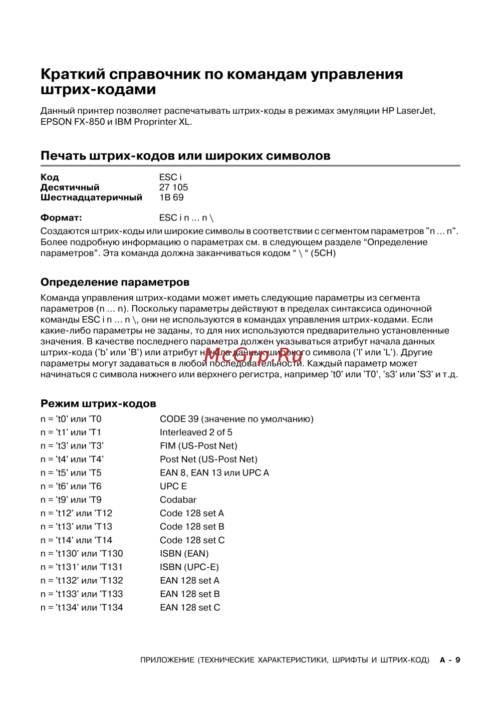 команды ESC i n ... n \, они не используются в командах управления штрихкодами. Если