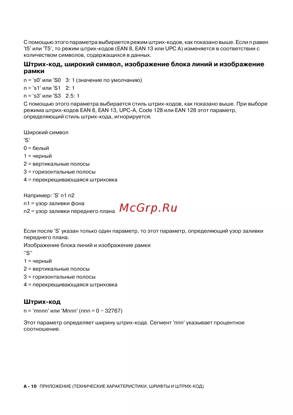 - Краткий справочник по командам управления штрих кодами p.180